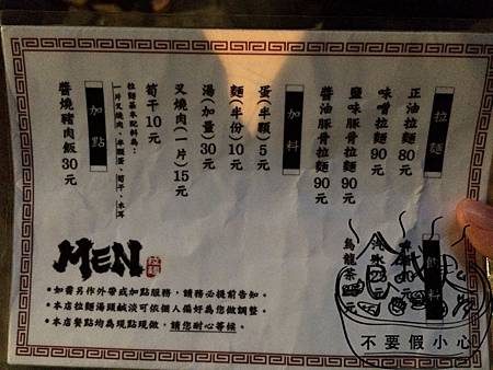 台中西屯派出所附近有一家MEN拉麵,跟一般拉麵店不同的是,他只開宵夜場