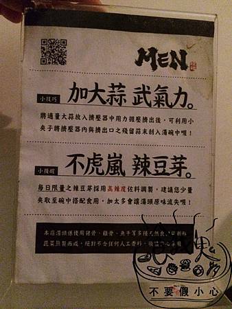 餓鬼個人覺得,如果為了要吃MEN拉麵,必須22:00出去拿號碼牌,等一、兩小時後再到現場候位,